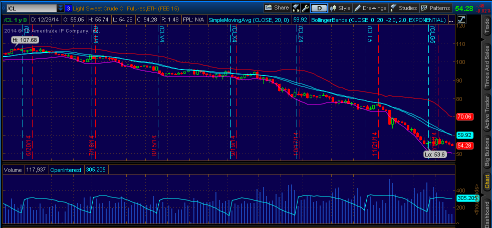 Oil futures are currently trading at $54.04 (12/29/14 – 11:16 am CST) and it’s hard to even gauge where the bottom might be. Back in June, 2014 Oil was trading at $107 and has over the past 6 months taken quite the beating of approximately 50%.  Some of the global implicit factors suppressing the market price of oil are: